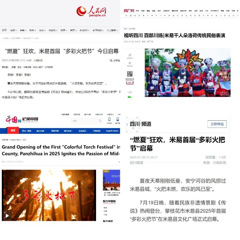 米易县以首届“多彩火把节”民俗文化活动为抓手,把铸牢中华民族共同体意识融入兴文强旅事业中一体推进落实,不断增进各族群众“五个认同”,取得显著成效。活动期间,接待游客12.78万人次,实现旅游收入5112万元,较去年同期分别增长92%、95%,带动相关产业协同发展。