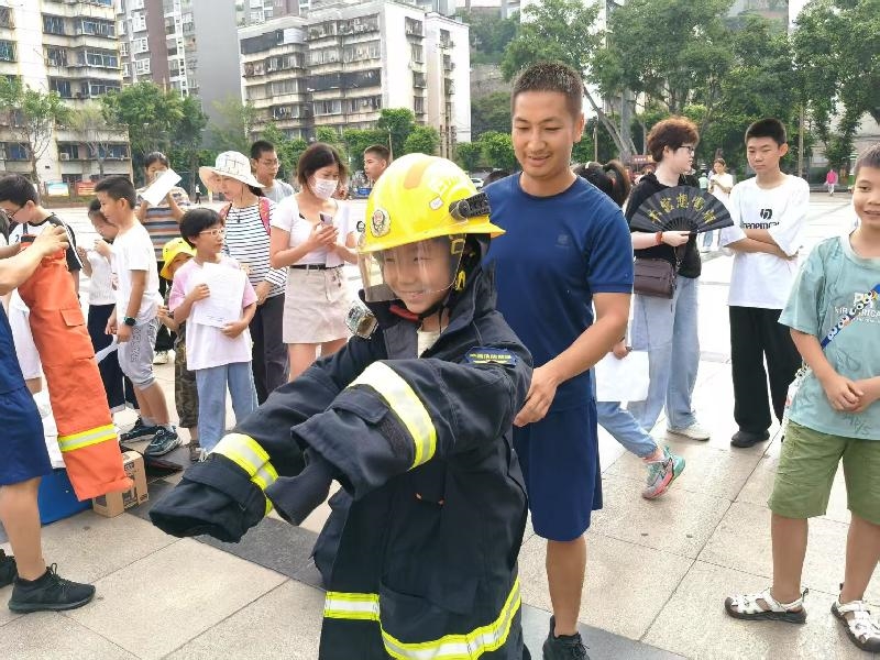多元课程,充实假期生活。围绕青少年兴趣与成长需求,“侨之家”打造特色课程矩阵:宣纸团扇制作、书法临摹、活字印刷体验等课程,让少年儿童感受传统文化魅力;“数学魔法”趣味课、科创益智手工课、户外趣味运动会等,让青少年在动手实践与互动中激发兴趣、提升素养;红色课堂上,老党员结合讲述三线建设史,厚植青少年爱国情怀;联合区法院开展的“小小法官”职业体验活动,带领孩子们走进法庭参与模拟庭审,近距离感悟司法威严;联合消防救援大队开展的消防知识课堂与模拟逃生演练,筑牢青少年暑期安全防线。