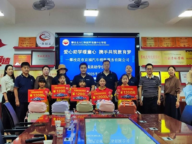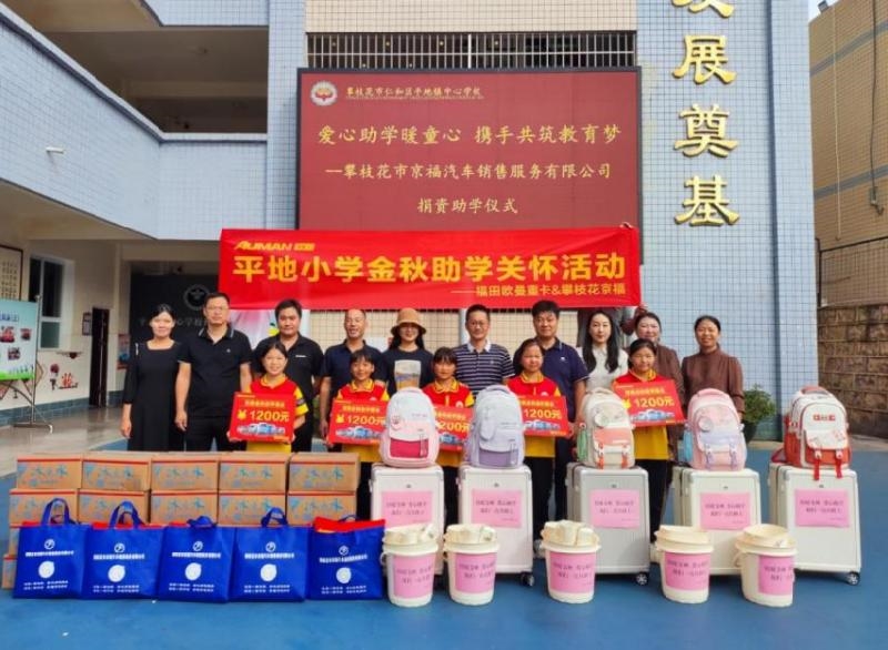 公司代表在现场勉励同学们勤学苦练、勇敢追梦,借助社会各界的关爱与支持,为梦想插上翅膀,飞向更广阔的未来。据悉,攀枝花京福汽车销售服务有限责任公司已连续五年对这五名学生进行资助,体现出强烈的社会责任感和持续的公益情怀。本次捐赠的助学金及物资折合价值共计1.8万元。
