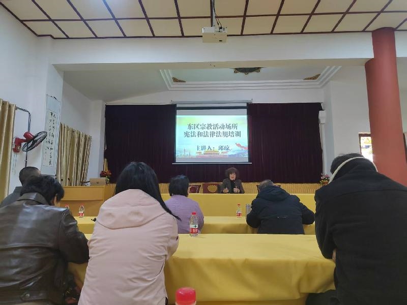 随后,东区民宗局组织辖区宗教活动场所教职人员及管理组织成员在玉佛寺二楼会议室开展了宪法及相关法律法规集中学习。本次学习重点围绕《宪法》等法律法规精神开展学习,旨在增强国家意识、法治意识和公民意识,进一步提升各类活动的规范化水平。
