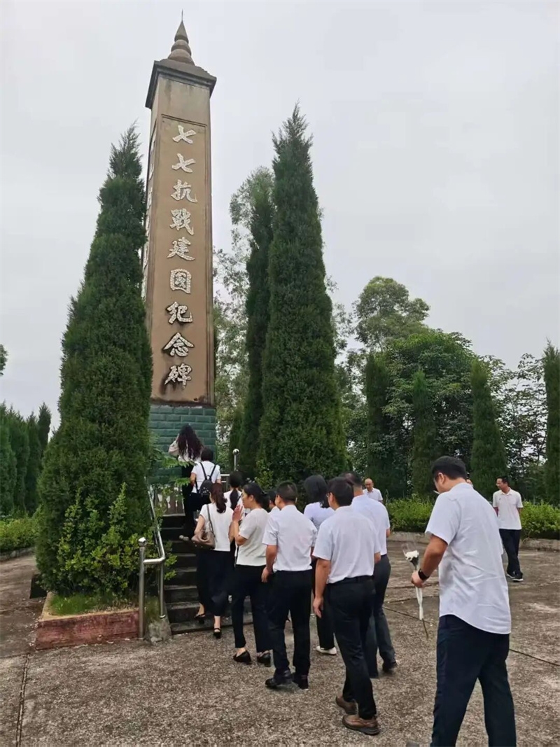 大家怀着崇敬的心情参观市级近现代重要史迹及代表性建筑——七七抗战建国纪念碑。在庄严肃穆的氛围中,全体人员整齐列队、肃立默哀,并依次向纪念碑敬献鲜花,朵朵白菊寄托着对英烈的无限哀思。