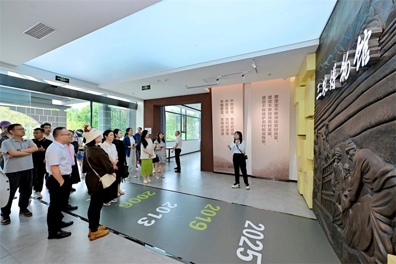 活动午间,嘉宾们品尝了地道的民俗美食与微博小镇特色手工窑烤面包,在美食中感受在地文化。下午的研学参观环节,嘉宾们统一乘坐观光车,依次参观了三农博物馆、50年代馆、锦枫康悦康复中心及森的美术馆,通过实地走访,深刻感知了微博小镇在文化传承、生态保护、艺术融合与健康产业方面的创新探索与实践成果。