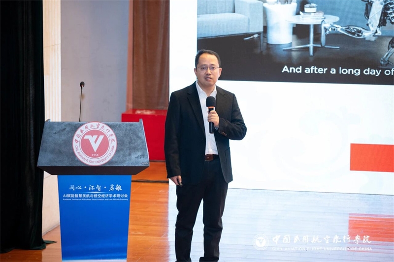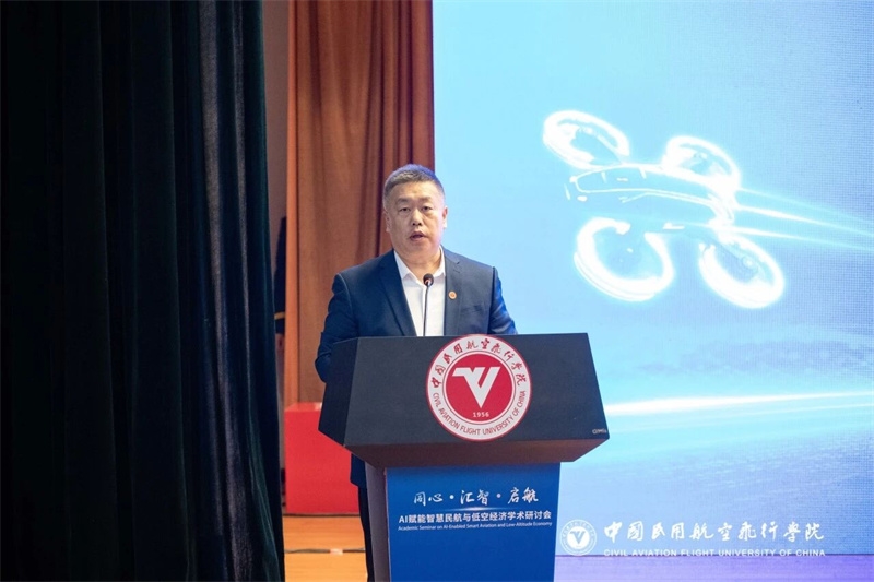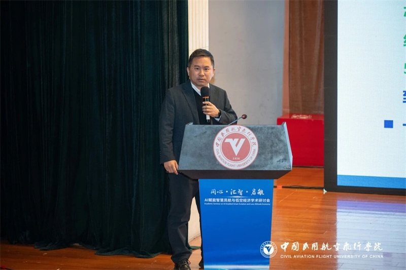 王维正代表中飞院向会议召开表示热烈祝贺。他表示,中飞院作为民航人才培养和科技创新重要阵地,积极围绕民航局关于发展通用航空和低空经济各项工作部署,聚焦“人工智慧+民航”建设,新组建了计算机与人工智能学院,成立人工智能专业;打造低空人才培训中心,积极助力成渝绵低空经济走廊共建;持续引进、培育、凝聚了一批归国留学专业人才,形成了良好的科研集群效应,在服务社会经济发展中不断发挥着学院学科优势和行业纽带作用。本次学术研讨会搭建了良好交流合作平台,期待以此次研讨会为契机,凝聚发展共识、汇聚创新智慧、携手通力合作,不断为科技强国、交通强国建设以及四川区域经济社会高质量发展贡献新的力量!