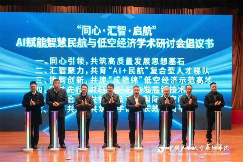 12月10日,由中国民用航空飞行学院(以下简称“中飞院”)与中国科协海智工作基地(德阳天府旌城)共同主办的“同心·汇智·启航”AI赋能智慧民航与低空经济学术研讨会在中飞院广汉校区图书馆报告厅举行。中飞院党委副书记、组织部部长王维正出席活动。四川省欧美同学会,四川省、成都市、德阳市科协及广汉市委统战部相关领导,中外专家代表,相关企业代表,中飞院相关机关职能部门、分院、二级学院负责人和师生代表参会。