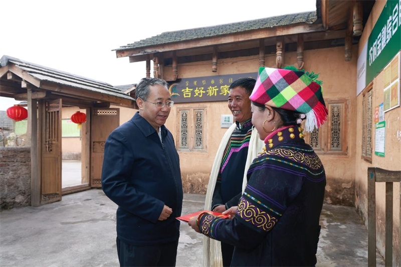 2025年12月25日,普布顿珠在昭觉县三岔河镇三河村调研贯彻落实习近平总书记视察三河村重要指示精神和民族团结、巩固脱贫攻坚成果工作情况。