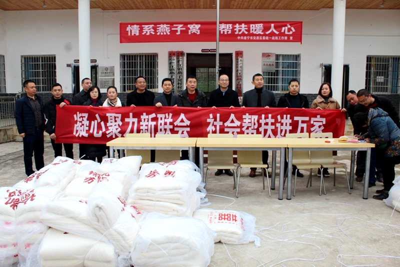 12月30日上午,遂宁市安居区委常委、统战部部长田斌率领知联会安居分会、区新联会以及相关人员深入拦江镇燕子窝村,看望慰问该村贫困户,为他们送去节日的温暖与关爱。