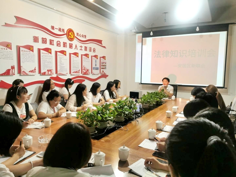 9月13日,遂宁市安居区新联会召开法律知识培训会,区新联会副会长、四川居阳律师事务所主任杨佑成就新颁布的《中华人民共和国民法典》专题授课,新联会会员等30余名人员参加培训。