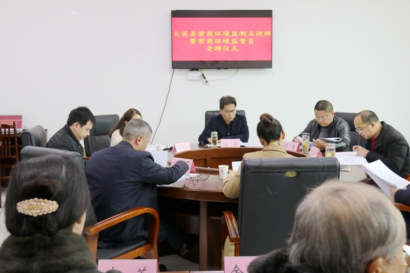 12月1日,遂宁市大英县召开营商环境监测点授牌暨营商环境监督员受聘仪式,副县长冷俊主持会议,向在全县范围内设立的10个营商环境监测点的联络员进行了授牌,并为聘请的16名营商环境监督员代表颁发了聘书。