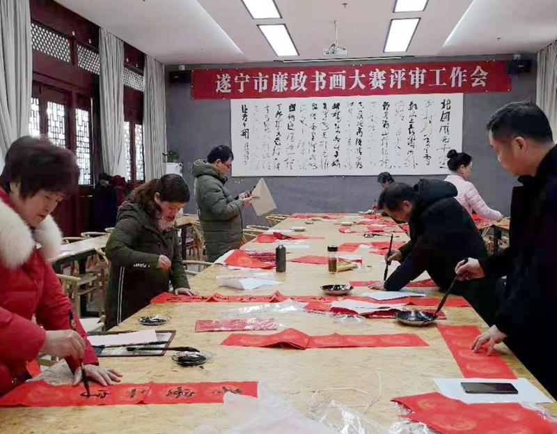 农历新年临近,春节贴“福”字、贴春联是中华民族一直延续的文化传统,是象征吉祥、表达人们向往美好生活的民族风俗。 为进一步推广中华优秀传统文化,营造欢乐详和喜庆的节日气氛,根据民进中央、民进四川省委安排部署,民进遂宁市委组织会内外书法家和书法爱好者开展“辛丑(2021)年春联万家·奋进新征程”活动。由于今年新冠疫情的影响,本次活动采用书法家们集中书写,然后由联系贫困村村委会代发给村民的形式。