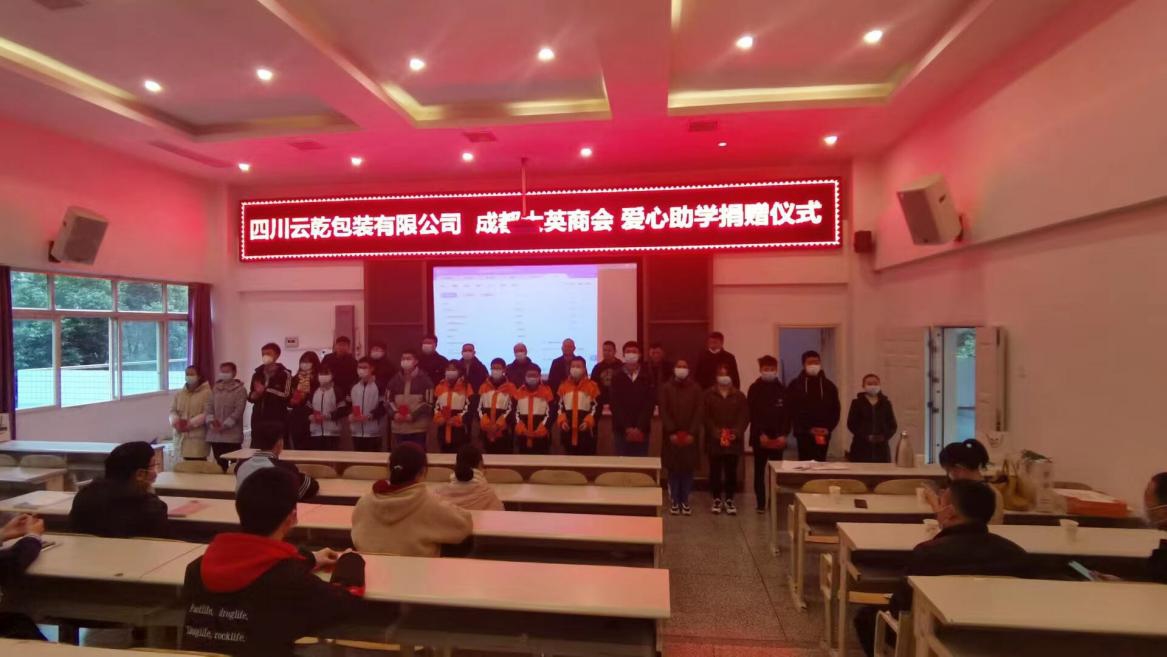 2021年2月4日上午,成都大英商会会员单位四川云乾包装有限公司一行到大英中学开展爱心助学捐赠活动,县委统战部、县工商联、县教体局相关负责人出席会议。