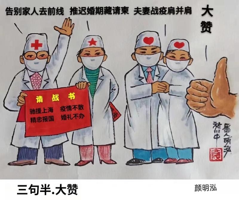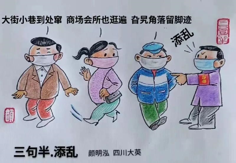 盟员颜明泓拿起手中的画笔,精心绘出抗疫系列漫画,通过群众更易接受的图画广泛宣传疫情防控政策,展现防疫一线人员的担当与奉献精神,鼓励大家共同努力,各出一份力,守护来之不易的防疫成果,携手打赢这场没有硝烟的抗疫战斗。