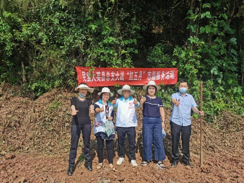 5月23日,民盟大英县总支开展“大战‘红五月’·帮扶到田间”为民办实事志愿服务活动,组织部分盟员赴玉峰镇斗笠村帮助农户实施大豆玉米带状复合种植,以实际行动巩固拓展脱贫攻坚成果,助力乡村振兴 。民盟大英县总支主委、县政协副主席刘华参加活动。