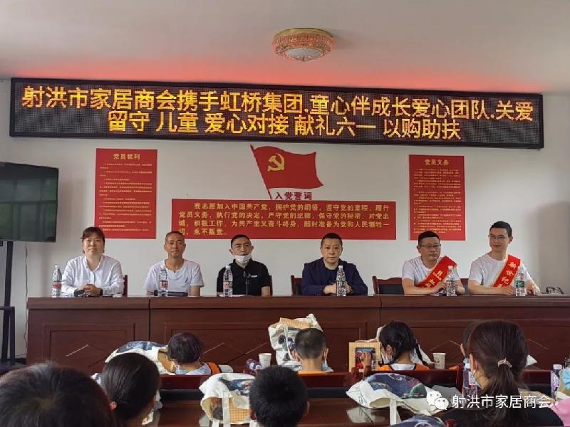 为进一步加强对留守儿童和困难儿童的关爱保护工作。5月29日,射洪市家居商会携手虹桥集团童心伴成长爱心团队,前往官升镇青果村举办“迎六一·庆端午”爱心慰问暨以购助扶活动。