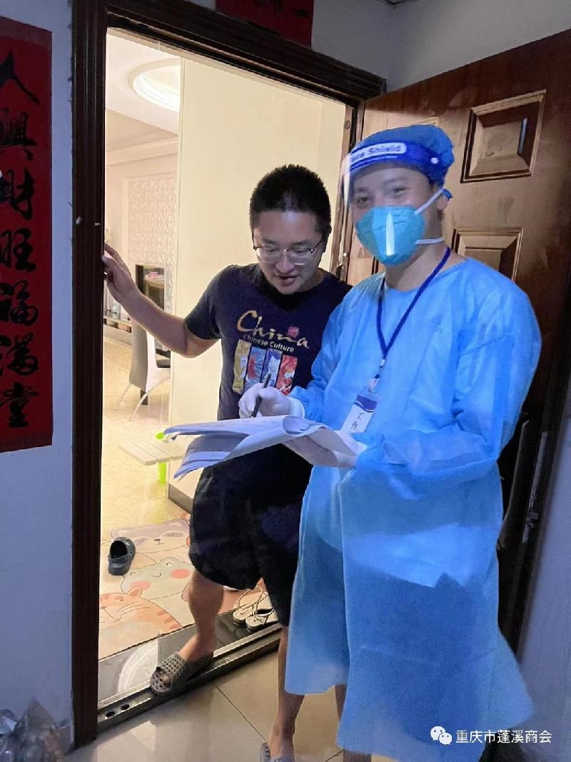 山火还未扑灭,重庆本次疫情卷土重来。8月24日,重庆市蓬溪商会理事赵飞主动报名担任社区抗疫服务志愿者。在大渡口双林社区朵力品道小区全员核酸检测期间,全力配合查验核酸人员体温、行程卡和健康码,逐一排查全员核酸检测情况,配合密接者流调登记、上门核酸和宣讲防疫政策等。灾难无情,商会有爱。我们一直都在!