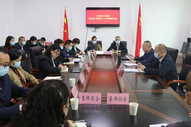 10月26日,大英统一战线召开传达学习党的二十大精神大会,县委常委、统战部部长田彬出席会议并讲话。各民主党派基层组织主委、副主委,县工商联班子成员及县知联会、县新联会、县台联会、县侨联会、县佛协会等统战团体负责人和县委统战部全体干部职工参加会议。