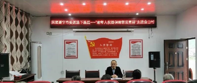 依托民盟遂宁市委“敬老爱老”活动,进一步增强老年人法律意识,切实维护老年人合法权益。10月28日,民盟遂宁市委开展送法下基层,“老年人权益保障普法宣传”走进大英县回马镇金山村。民盟市委副主委、秘书长庞雪君出席活动。