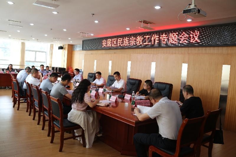 5月31日,安居区召开民族宗教工作专题会,传达学习《四川省民族团结进步条例》,安排部署2023年民族宗教工作。区委常委、统战部部长杨军出席会议并讲话,区直相关部门、各镇(街道)主要同志参加会议。