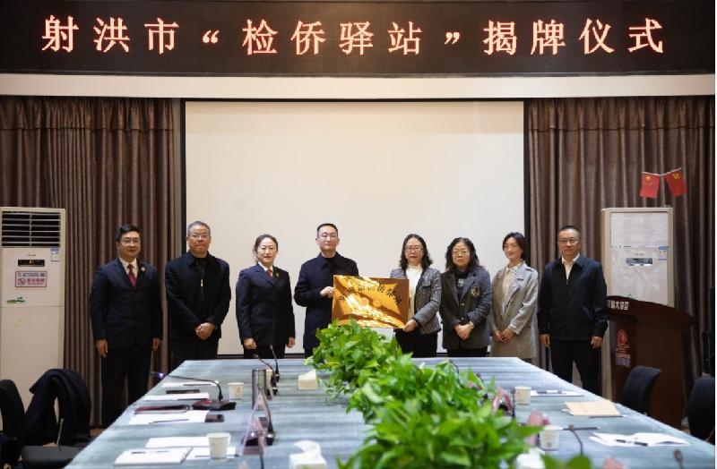 11月21日,射洪市“检侨驿站”在市“侨胞之家”正式揭牌成立。遂宁市人民检察院检察委员会专职委员邱运东,遂宁市侨联副主席梁琳,射洪市政协副主席、民建射洪总支主委李元红出席揭牌仪式暨“检侨驿站”侨企座谈会,射洪市人民检察院检察长王成虹主持座谈会。