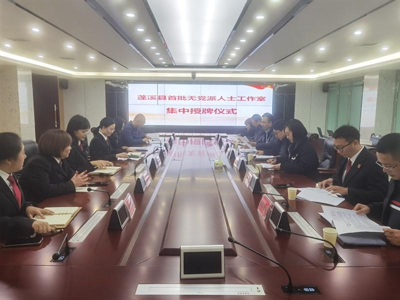 11月30日,蓬溪县举行首批无党派人士工作室集中授牌仪式。县法院、县委统战部、县教育体育局、县文化广电旅游局、县卫生健康局、县知联会相关负责人,4处无党派人士工作室负责人及成员代表参加仪式。