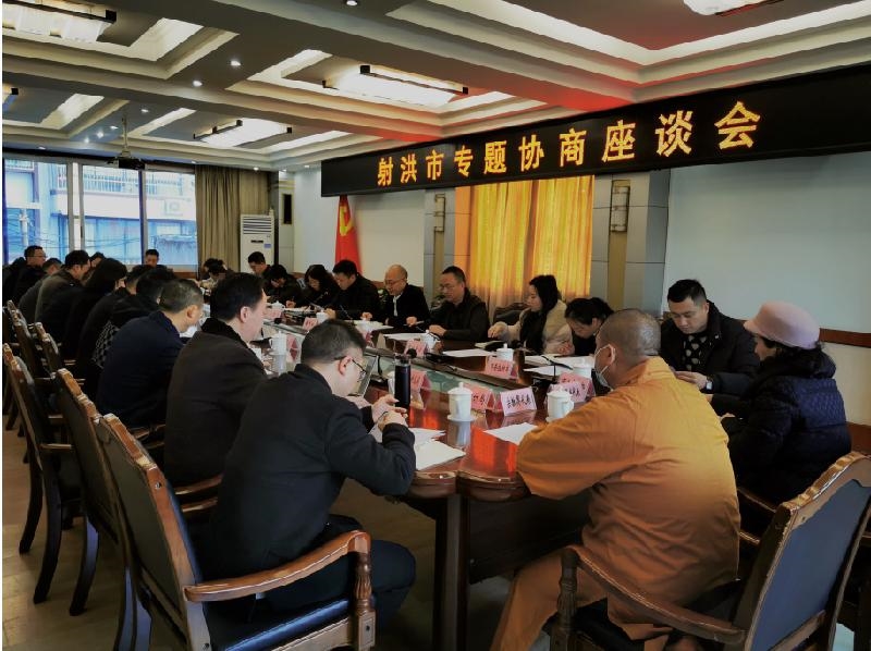 12月14日,射洪市统一战线召开专题协商座谈会,市委常委、统战部部长荣泽黎主持会议,市领导黄青松、李元红、张仁康参加会议。
