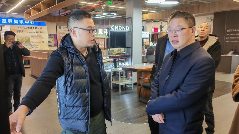 在四川省展示道具行业商会,黄亚军一行参观了商会展厅,随后与商会企业家就项目投资事宜进行了座谈交流。黄亚军表示,展示道具行业是由零售市场的兴起而拉动的新兴行业,服务对象广泛,涵盖了各大连锁零售企业和家电、食品、医药等众多行业,市场需求稳定,市场潜力巨大。蓬溪作为“成渝双城经济圈”重要节点城市,区位优势得天独厚、要素保障坚强有力、营商环境优质高效,产业定位与展示道具行业契合度较高,欢迎崔泽新会长一行莅蓬考察,共同推动项目落户蓬溪。