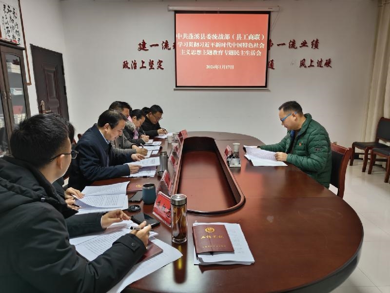 1月17日,遂宁市蓬溪县委统战部(县工商联党组)领导班子召开学习贯彻习近平新时代中国特色社会主义思想主题教育专题民主生活会。县委统战部常务副部长曾杰主持会议,县委主题教育办联络三组到会指导并点评。