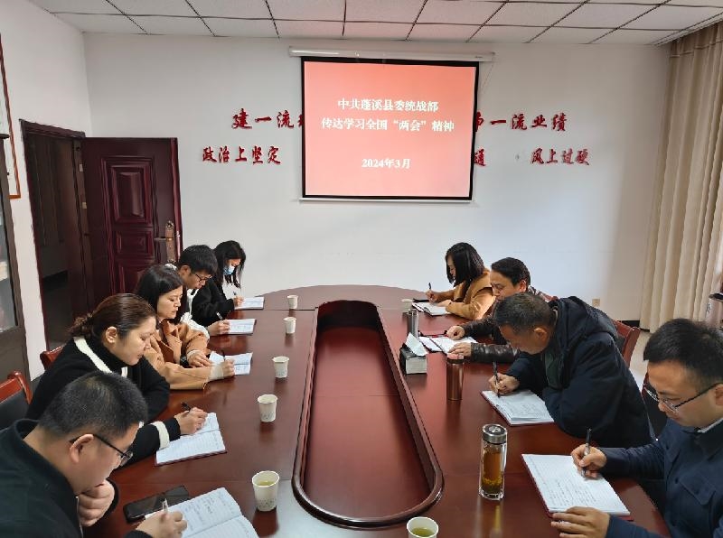 3月12日,遂宁市蓬溪县委统战部召开干部职工会议,专题传达全国“两会”精神,研究贯彻落实举措。