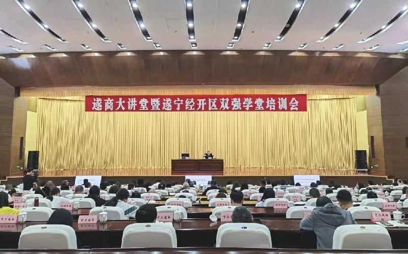 3月28日下午,由遂宁市工商联、遂宁经开区非公企业党委主办,遂宁经开区党群服务中心、市中小企业服务中心承办的遂商大讲堂暨遂宁经开区双强学堂培训会顺利开讲,市工商联企业家副主席、副会长,各县(市、区)、市直园区优秀民营企业家代表200余人参加。