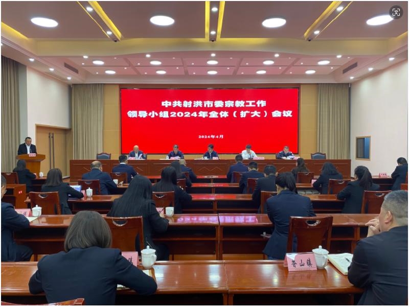 4月10日,射洪市召开市委宗教工作领导小组2024年全体(扩大)会议,市委副书记,市委宗教工作领导小组组长陈文出席会议并讲话,市委常委、统战部部长,市委宗教工作领导小组副组长荣泽黎主持会议。