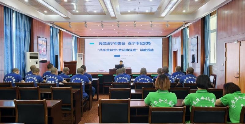 为深入贯彻落实"黄丝带"帮教工作部署,5月26日,民盟遂宁市委会联合遂宁市公安局在市公安局戒毒所开展专项帮教活动。此次活动通过"座谈交流+法治宣讲"的形式,深化警盟协作,共同推进戒毒帮教工作取得新成效。民盟遂宁市委会副主委、秘书长蒋红梅,市公安局监管支队支队长邢林,市公安局戒毒所所长王绍军出席会议。活动特邀民盟遂宁市市直机关总支副主委、遂宁市律师协会副监事长杨东升为全所20余名戒毒人员带来一场精彩的法治课。