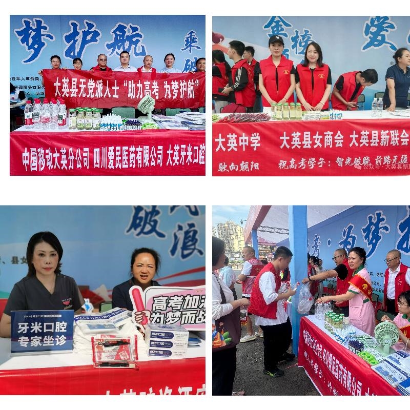 6月7日,全国高考正式拉开帷幕,作为一年一度的重要考试,高考不仅是千万学子人生道路上的关键转折点,更牵动着无数家庭的心。高考期间,大英县党外知识分子联谊会、大英县新的社会阶层人士联谊会联合部分爱心民营企业,在大英中学考点开展“助力高考 为梦护航”志愿服务活动,旨在为考生营造一个安全、舒适、有序的考试环境,助力他们以最佳状态迎接挑战,实现人生梦想。