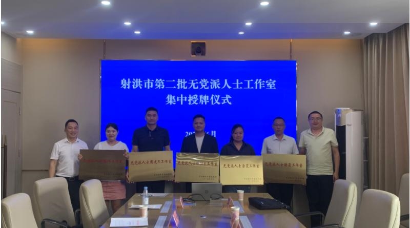 6月19日,射洪市举行第二批无党派人士工作室集中授牌仪式。市委统战部、市农业农村局、市教育局、市司法局、太和街道、平安街道相关负责人,5处无党派人士工作室负责人参加会议。