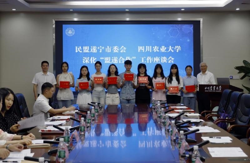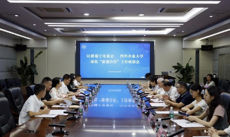 6月20日,民盟遂宁市委会与四川农业大学深化“盟遂合作”工作座谈会在四川农业大学成都校区召开。民盟中央常委、民盟四川省委会副主委、四川农业大学校长吴德,四川农业大学党委副书记张强,民盟遂宁市委会主委、市政协副主席刘建军出席会议。四川农业大学党委常委、统战部部长侯永翠主持会议。