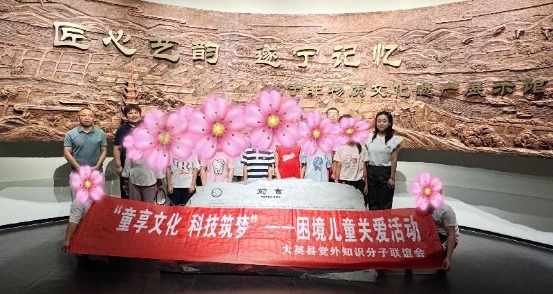 为进一步关心关爱困境儿童成长,拓宽其科学视野,激发科学探索兴趣,7月4日,大英县党外知识分子联谊会“牵手”河边镇星花小学校带领15名结对帮扶困境儿童赴四川宋瓷博物馆开展“童享文化 科技筑梦”困境儿童关爱活动,县委统战部相关负责同志受邀参加活动。