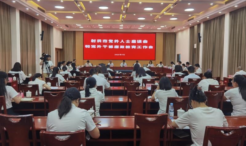 7月15日,射洪市召开党外人士座谈会和党外干部廉政教育工作会暨全市各民主党派、无党派人士“学规定、强作风、树形象”主题教育工作会。市委常委、统战部部长荣泽黎主持会议并讲话。市委常委、市纪委书记、市监委主任吴钰,市人大常委会副主任、农工党射洪总支主委黄青松,副市长钱洪杰,市政协副主席金欣,市政协副主席、民建射洪总支主委李元红,市政协副主席、民盟射洪总支主委廖晓华出席会议。