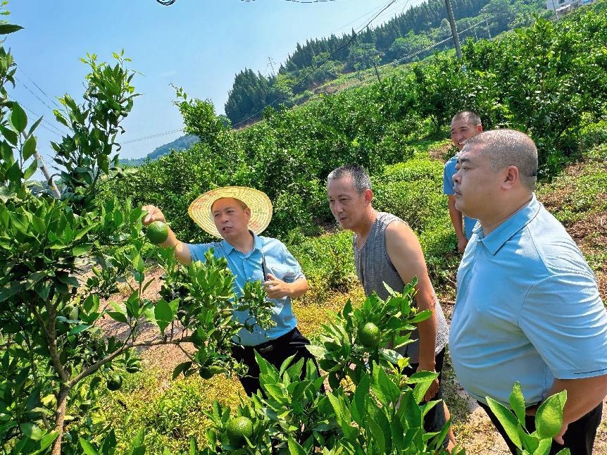 在聚贤镇皂角垭村金豪园种植合作社、拦江镇库楼湾村段氏家庭养殖农场,服务队针对柑橘着色不均、大小年等问题指导优化修剪技术及水肥管理,并就水稻、玉米病虫害防治提出“生物防治+物理阻隔”绿色防控方案,同步配套土壤改良与轮作优化建议,为农户提供全方位技术指导。