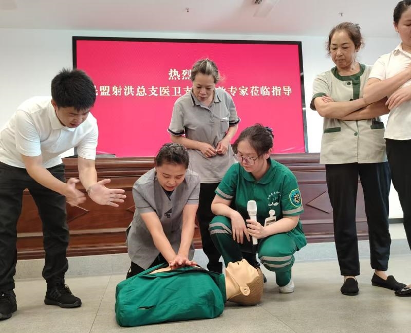 8月28日,民盟射洪总支医卫支部走进射洪市锂电创新产业园人才孵化中心,开展“急救知识进企业”公益培训活动。此次活动吸引了40余名企业员工参与,现场气氛热烈。