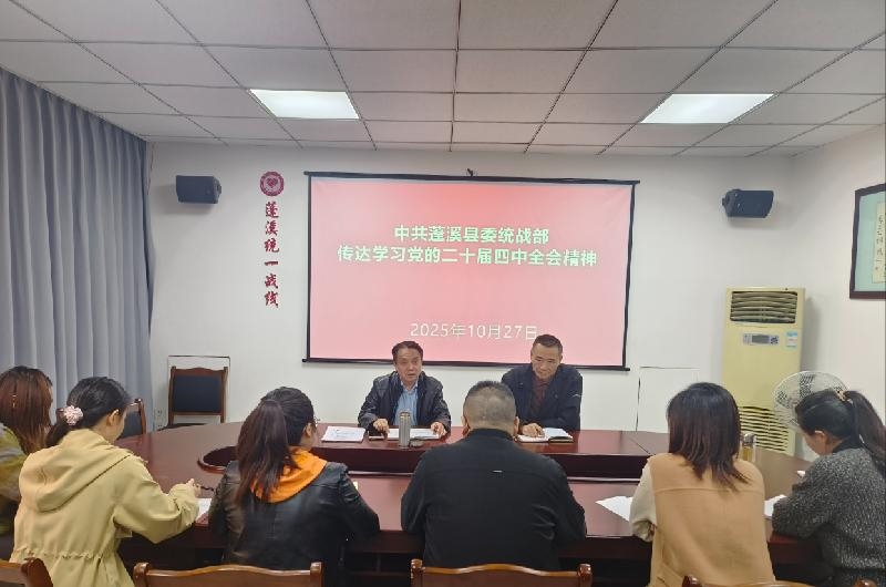10月27日,蓬溪县委统战部召开干部职工会议,专题传达学习党的二十届四中全会精神,研究贯彻落实措施。