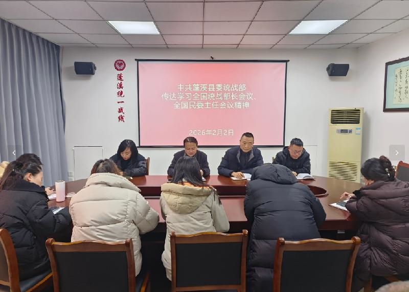 2月2日,遂宁市蓬溪县委统战部召开干部职工会议,专题传达学习全国统战部部长会议和全国民委主任会议精神,研究部署贯彻落实举措。