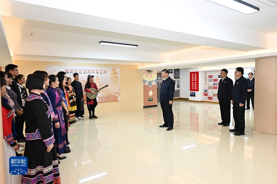 南宁市良庆区蟠龙社区是一个多民族聚居社区。习近平来到社区党群服务中心,听取现场工作人员关于开展主题教育、促进便民惠企、举办民族特色活动等情况介绍,对他们坚持党建引领聚合力、服务为本促发展的做法表示肯定。在文体活动室,他饶有兴致地观看社区居民习练书法、合唱民歌,同大家亲切交流,鼓励社区充分利用人才、场地等资源,开展更多健康有益、启智润心的文化活动,以此激发更大的正能量。习近平指出,社区是基层自治的基本单元,是国家治理体系的基层基础。通过社区这个平台,办好“一老一小”等民生实事和公共事务,积极回应群众关切,是中国特色基层治理的显著优势,要把这一优势发挥好。建设多民族群众互嵌式社区,是促进各族群众交往交流交融的重要途径。广西建设铸牢中华民族共同体意识示范区,要从基层社区抓起,通过扎实的社区建设、有效的社区服务、丰富的社区活动,营造各族人民一家亲的浓厚氛围,把民族团结搞得更好。