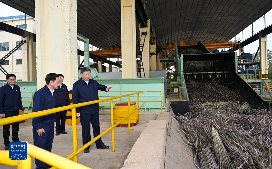 12月14日至15日,中共中央总书记、国家主席、中央军委主席习近平在广西考察。这是14日下午,习近平在来宾东糖凤凰有限公司考察。新华社记者 谢环驰 摄