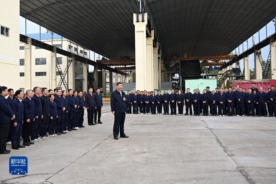12月14日至15日,中共中央总书记、国家主席、中央军委主席习近平在广西考察。这是14日下午,习近平在来宾东糖凤凰有限公司考察时,同企业员工亲切交流。新华社记者 谢环驰 摄