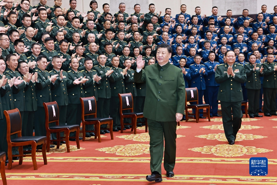 12月14日至15日,中共中央总书记、国家主席、中央军委主席习近平在广西考察。这是15日上午,习近平在南宁亲切接见驻南宁部队上校以上领导干部,代表党中央和中央军委向驻南宁部队全体官兵致以诚挚问候。新华社记者 李刚 摄