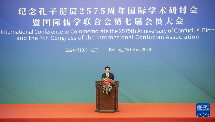 新华社北京10月19日电 纪念孔子诞辰2575周年国际学术研讨会暨国际儒学联合会第七届会员大会19日在京开幕,中共中央政治局常委、全国政协主席王沪宁出席开幕会并致辞。