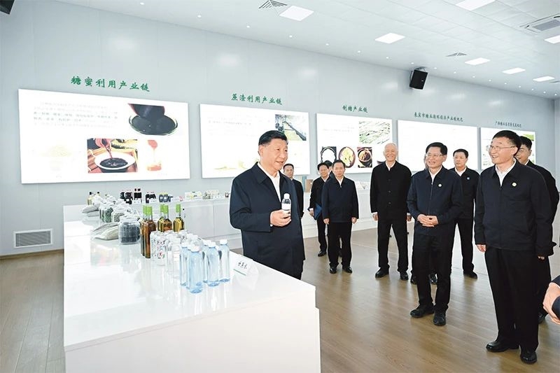 2023年12月14日至15日,中共中央总书记、国家主席、中央军委主席习近平在广西考察。这是14日下午,习近平在来宾东糖凤凰有限公司考察。新华社记者 谢环驰/摄
