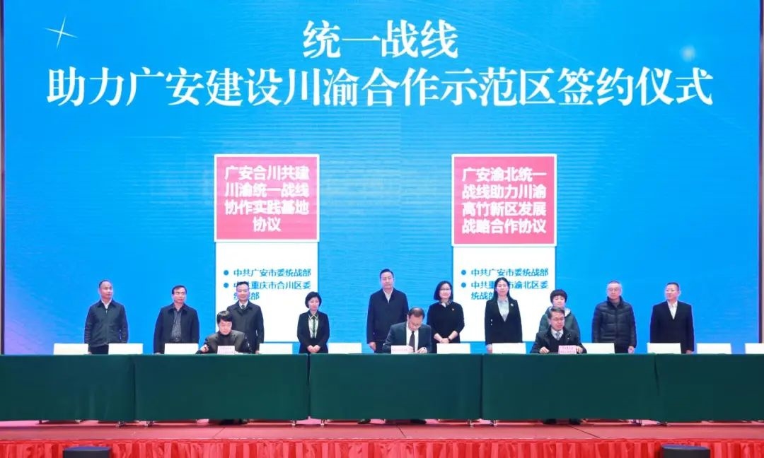 广安与渝北区、合川区分别签署统一战线助力川渝高竹新区发展战略合作协议、共建川渝统一战线协作实践基地协议