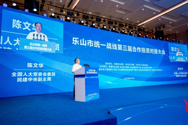 陈文华在讲话中代表民建中央对乐山市统一战线第三届合作投资对接大会召开表示热烈祝贺。他说,近年来,乐山全市上下坚定以习近平新时代中国特色社会主义思想为指导,全面落实中共中央、国务院和省委、省政府部署要求,扎实推动经济社会高质量发展,取得了长足进步。他希望乐山保持奋发进取、干事创业劲头,深入学习贯彻习近平总书记来川视察重要指示精神,围绕省第十二次党代会擘画的宏阔蓝图,全力以赴、拼搏实干,确保省党代会精神在乐山落地生根、开花结果。希望民建乐山各级组织加强自身建设,进一步增强同心同德、同心同向、同心同行的政治自觉和行动自觉,时刻保持攻坚克难、锐意进取的干劲,巩固民建魅力基层组织创建成果,提升“滴水工程”社会服务品牌质效,积极参政议政、建言献策,充分发挥密切联系经济界的独特优势,为乐山经济社会高质量发展贡献民建力量。