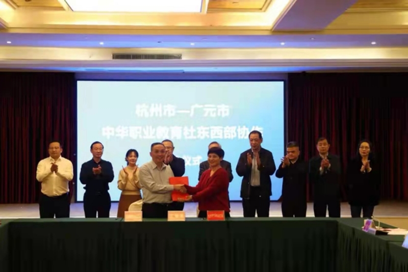 ▲杭州市—广元市中华职业教育社签订东西部协作战略合作协议。