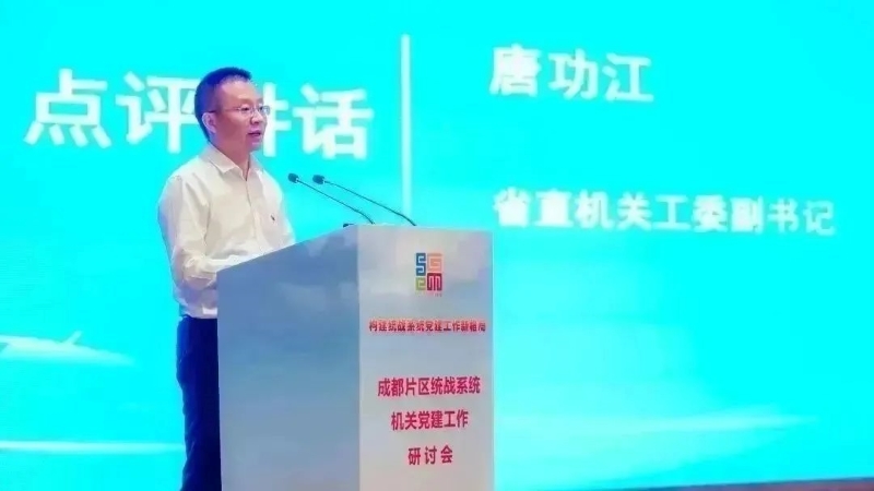 9月22日,以“构建统战系统党建工作新格局研究“为主题的成都片区统战系统机关党建工作研讨会在绵阳召开。省委统战部机关党委书记王志军出席会议并讲话。省直机关工委副书记唐功江到会指导并作点评讲话。绵阳市委常委、统战部部长、秘书长姚永红出席会议并致辞。省工商联党组成员、秘书长喻晓春,省社会主义学院党组成员、副院长颜旭,致公党省委会机关二级巡视员、民主党派省委会机关中共党总支书记杨成出席会议。