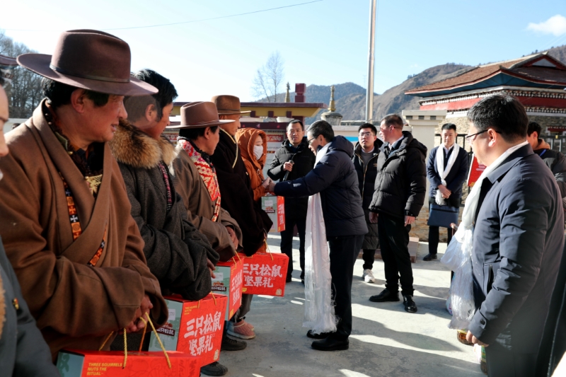 在呷巴乡俄达门巴村,万群一行向184户村民送上大米、坚果礼盒等新春慰问品,实地查看了村集体产业发展情况,深入村民家中走访了解群众生产生活情况,给他们送上新春祝福。万群表示,作为定点帮扶单位,省社会主义学院将倾情倾力支持俄达门巴村巩固脱贫攻坚成果,助力乡村振兴发展。